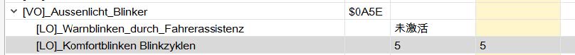(1)、进0009 —008 访问权限输31347‐‐进007‐匹配‐‐找到Aussenlicht_Blinker‐‐Komfortblinken Blinkerzyklen‐‐新的数据内输入5,→应用。