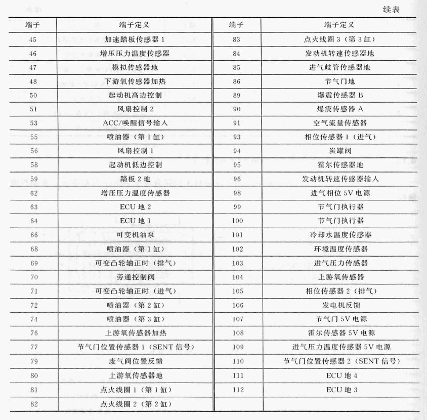 以吉利 2016 年款远景 X6 车型为例,变速器电脑端子图如图 1-19 所示,端子定义见表1-33、表1-34。