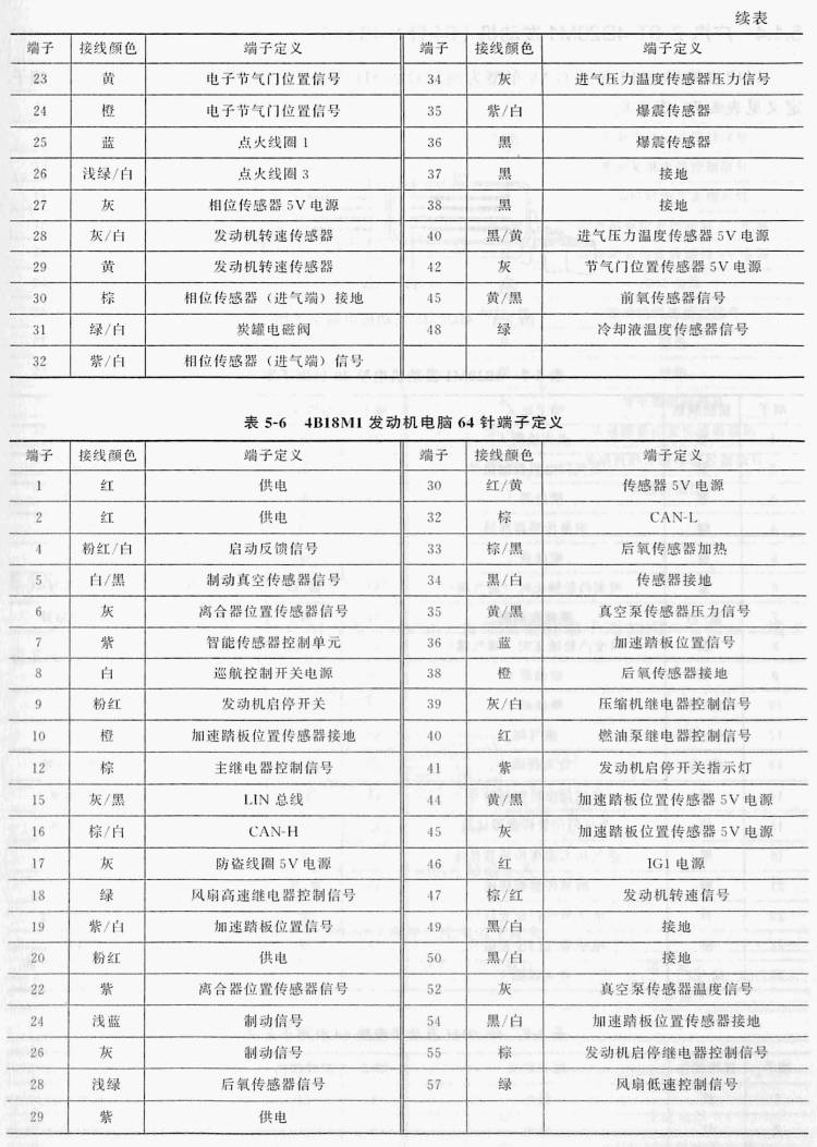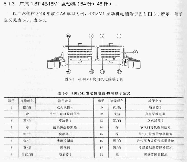 以上汽荣威2019年款i6车型为例,10E4E发动机电脑端子图如图4-1所示,其端子定义见表 4-1。