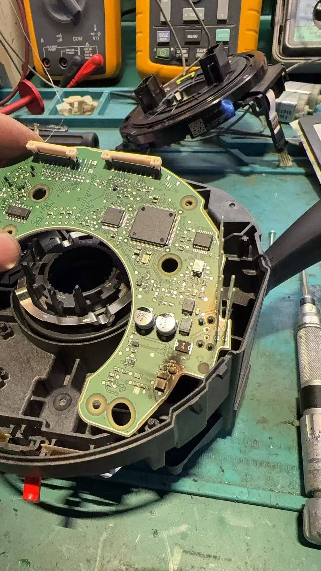 - 安装注意: 重新安装时,必须确保游丝(时钟弹簧)居中。如果游丝位置偏离,打死方向时会拉断排线。