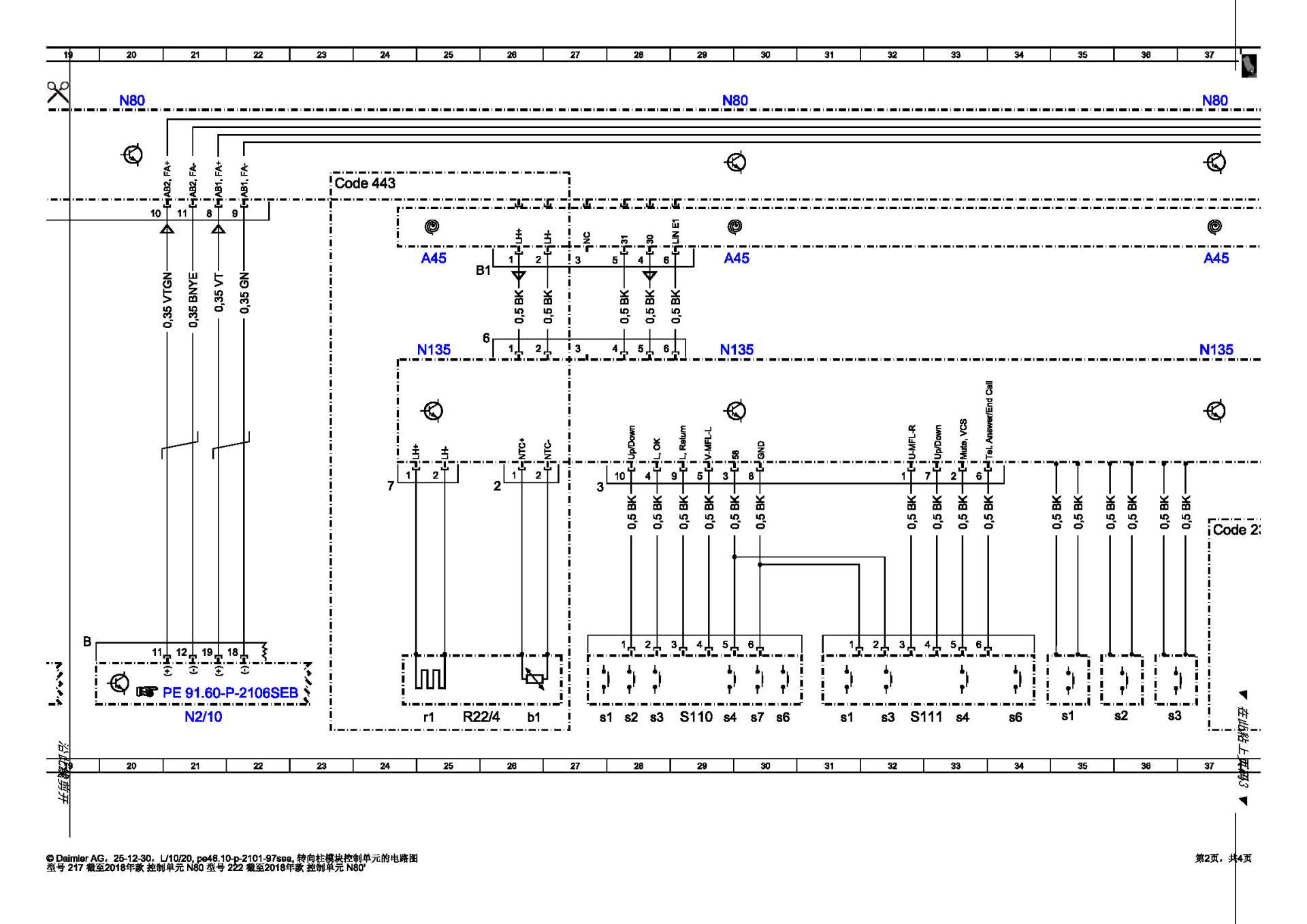 - 核心故障点: 转向柱模块 (N80 / MRM) 内部短路