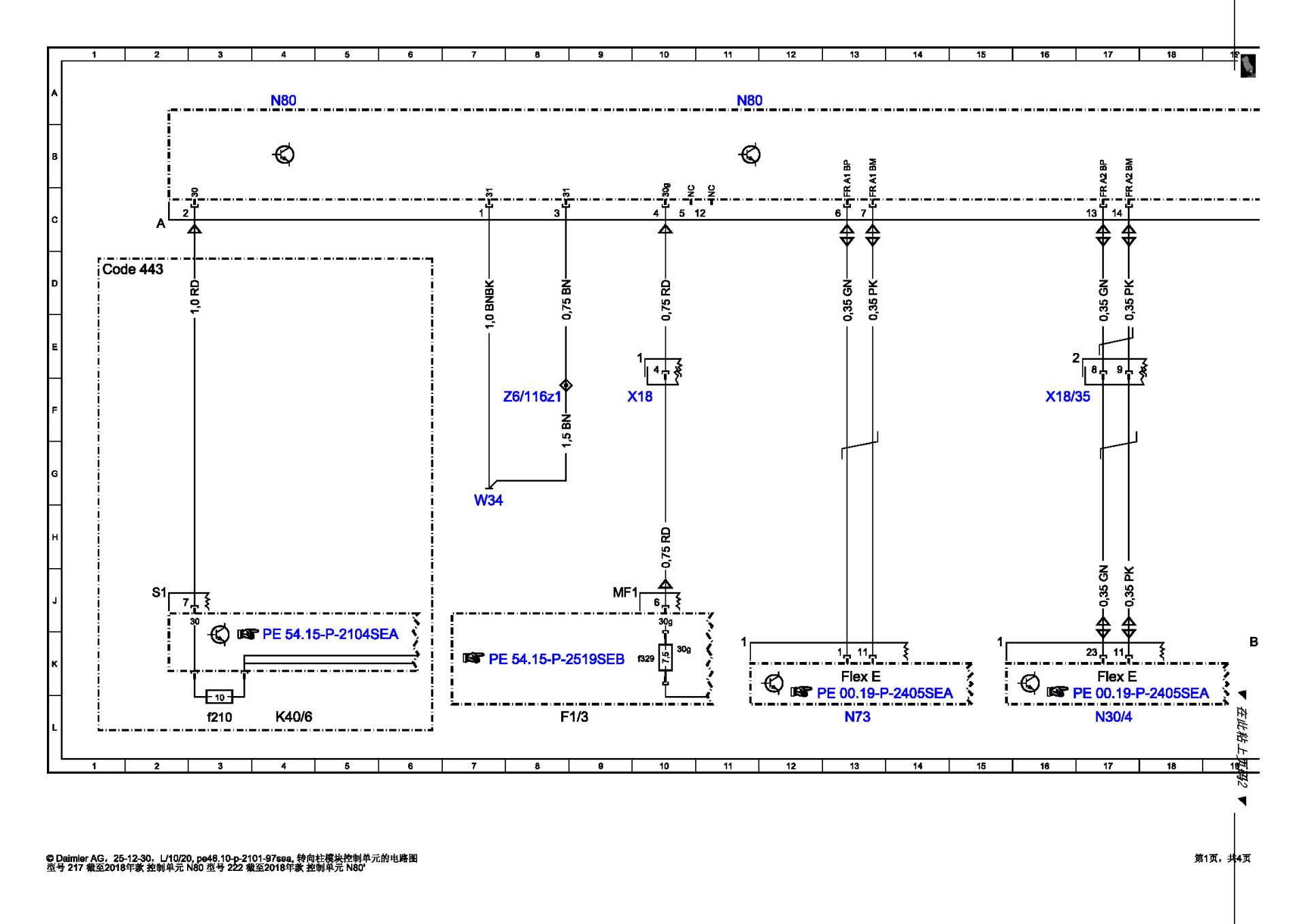 - 物理检查: 测量转向柱插头的电源(30电/30g电)和搭铁正常,FlexRay总线电压正常,排除了外部线路断路的可能性。