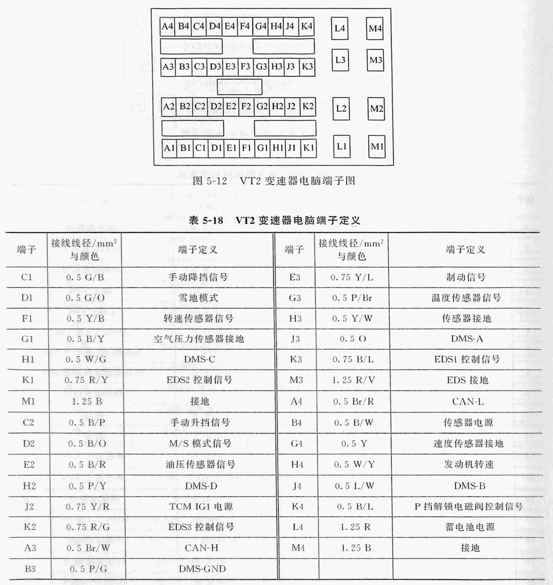 以吉利 2016 年款帝豪 GS、2017 年款帝豪 GL车型为例,4G18 发动机电脑端子图如图1-7 所示,端子定义见表 1-11、表 1-12。