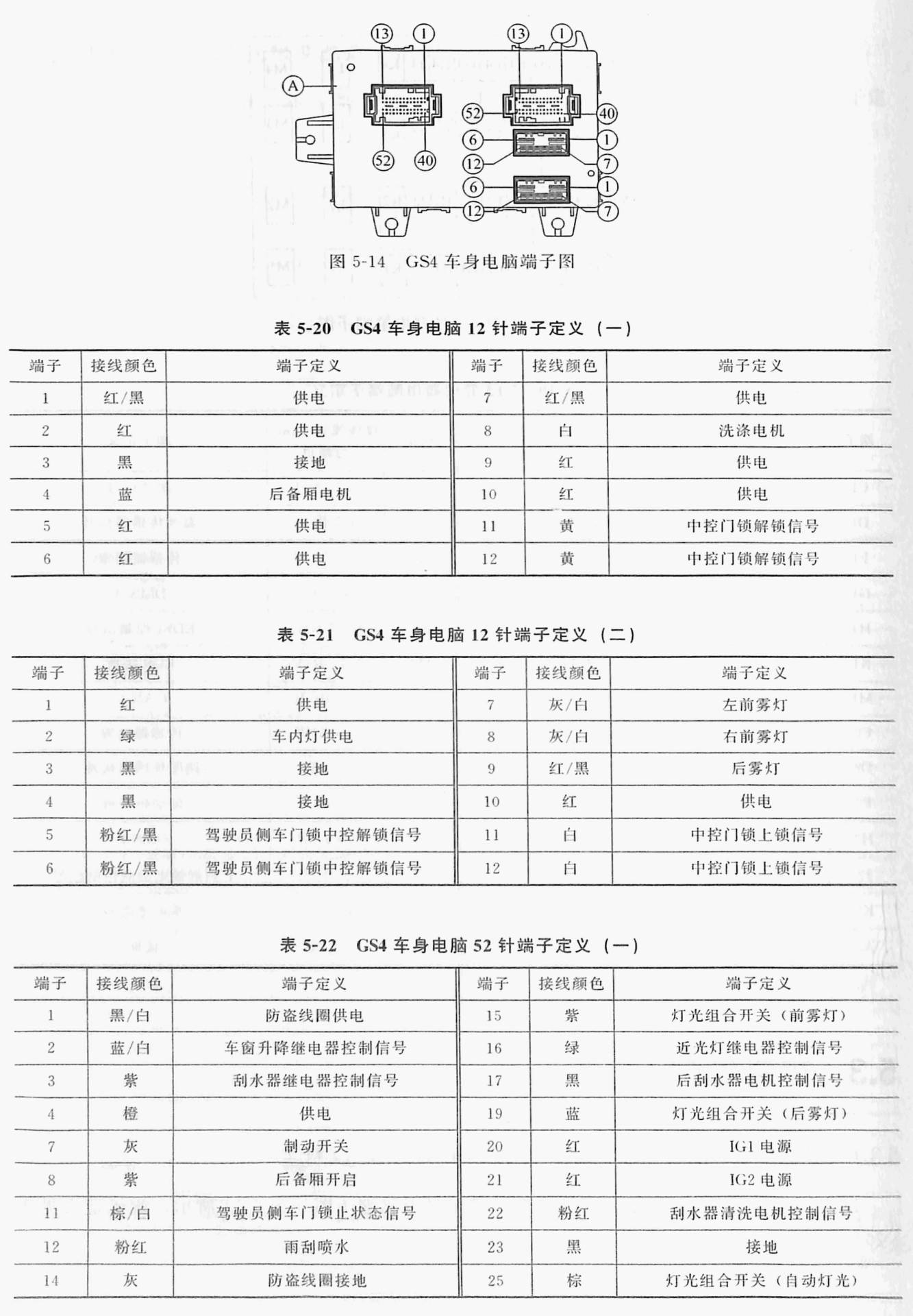 以广汽传祺2012年款GS5车型为例,该车变速器电脑端子图如图5-10所示,端子定义见表5-15、表5-16。