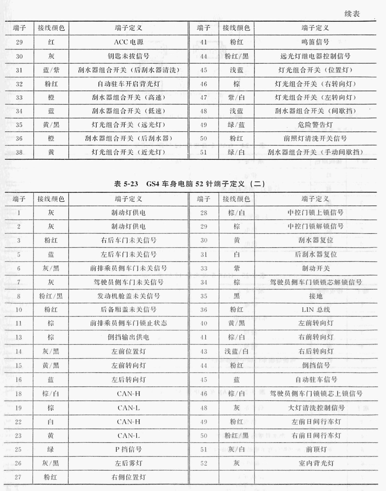 以广汽传祺2017年款GA8车型为例,4B20M1发动机电脑端子图如图5-4所示,端子定义见表5-7、表5-8。