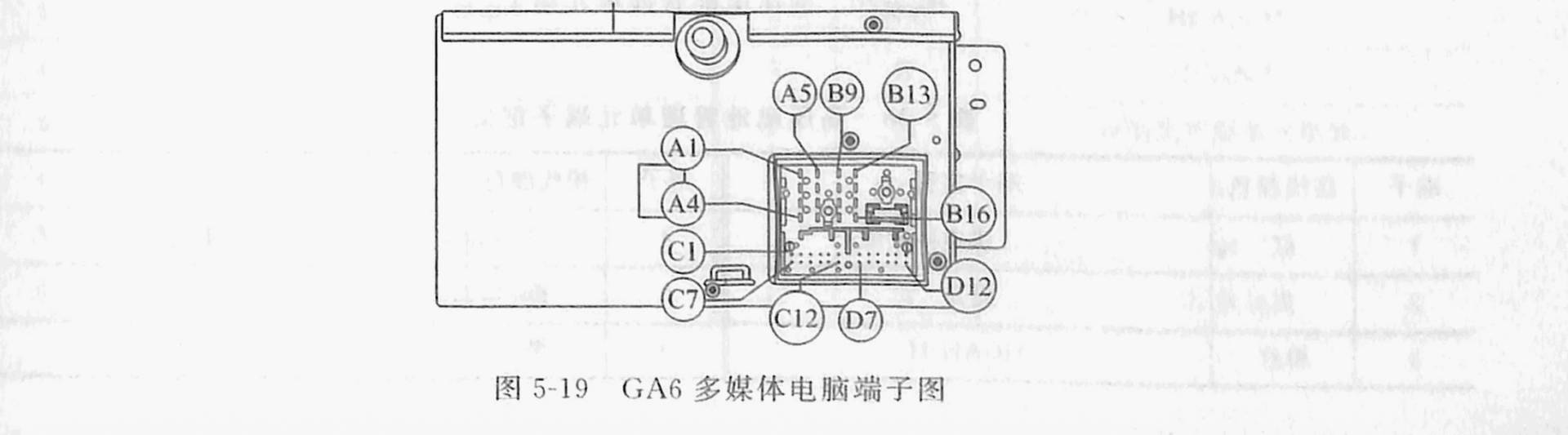 以广汽传祺2012年款GS5车型为例,该车变速器电脑端子图如图5-10所示,端子定义见表5-15、表5-16。