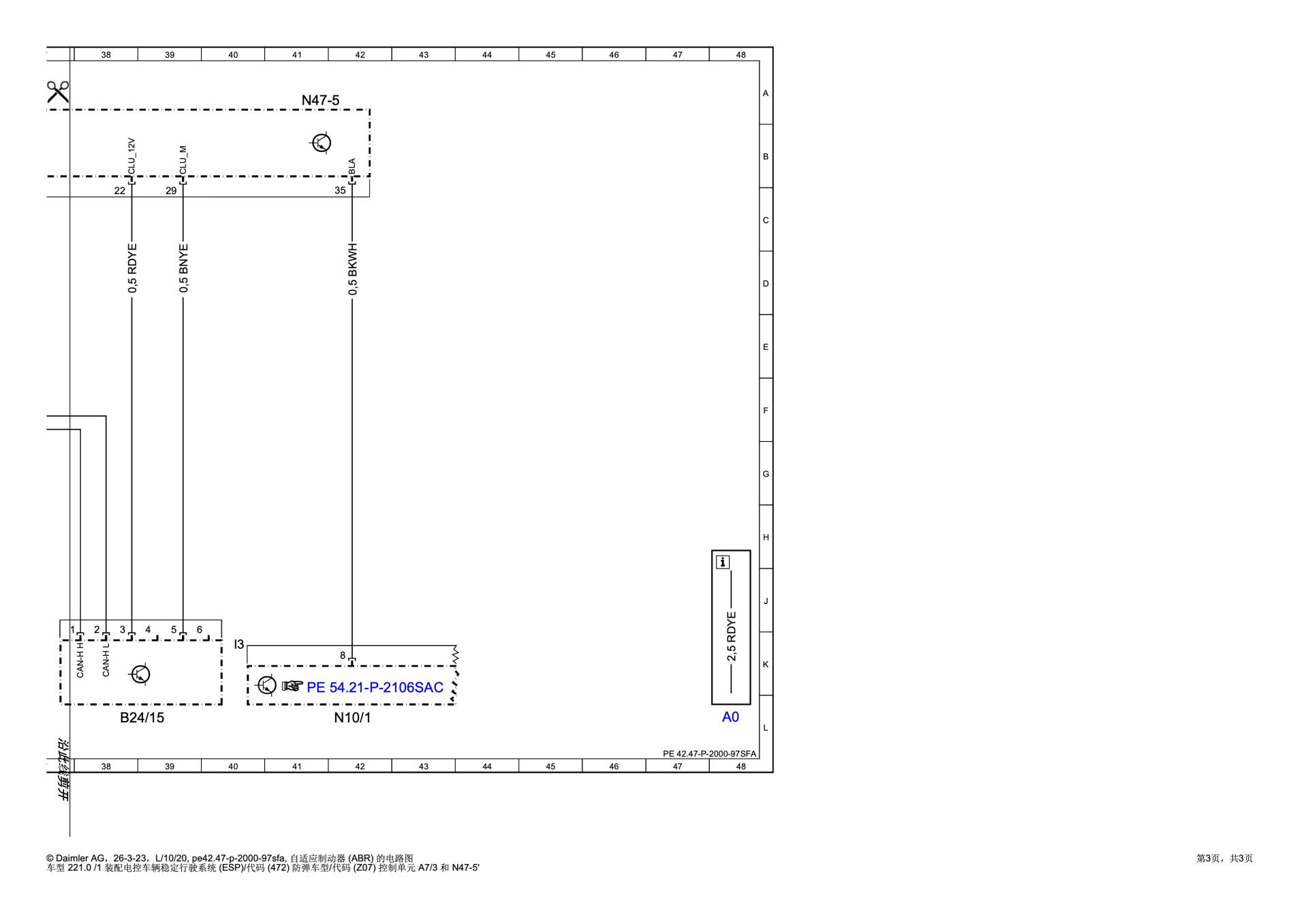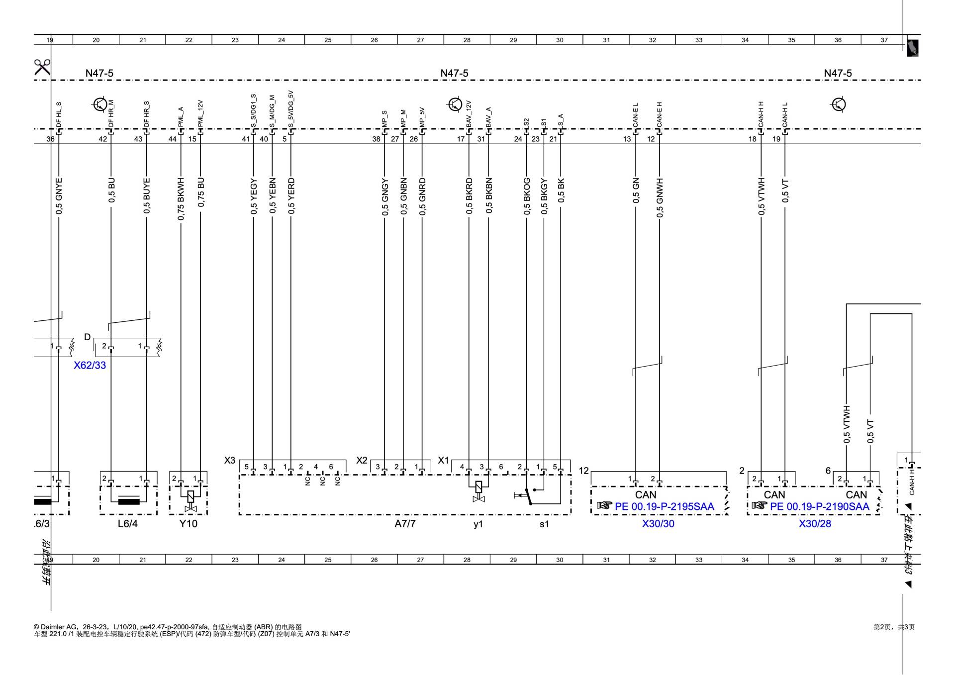 W221 的 ABR 系统主要挂载在 底盘 CAN (CAN E) 上。