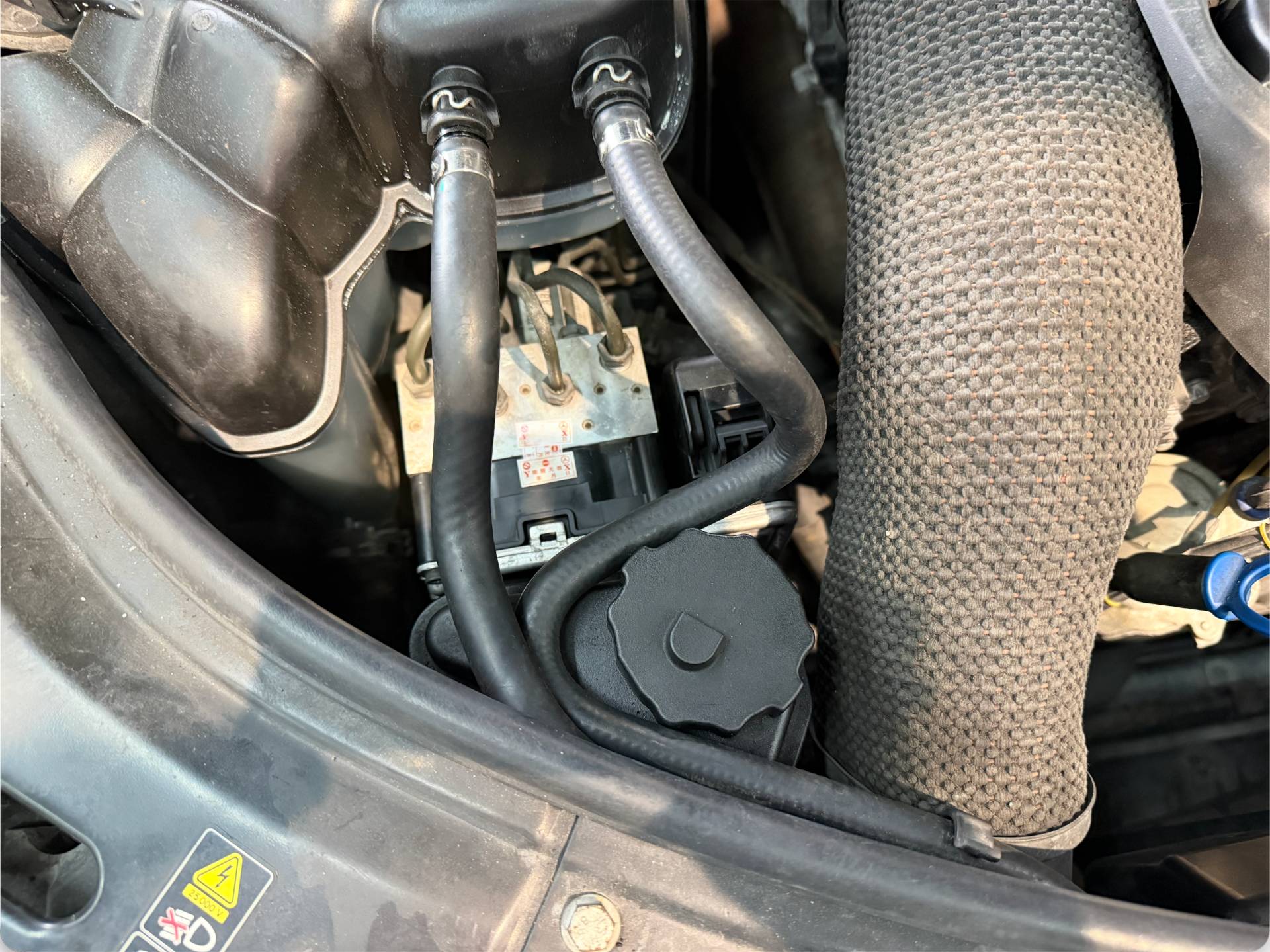 - 控制单元位置: 位于发动机舱左侧,与液压单元集成在一起。