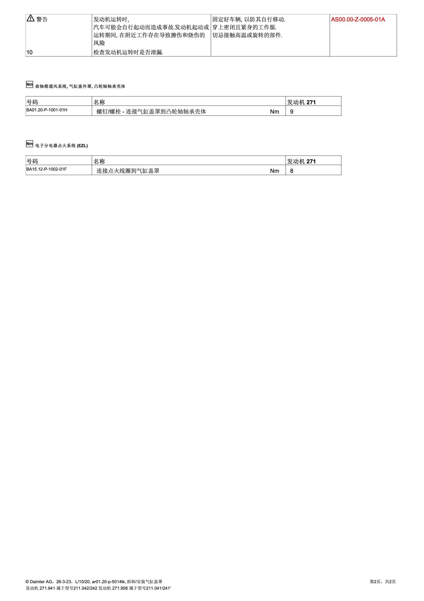 | BA15.12-P-1002-01F | 点火线圈 连接至 气缸盖罩 | M271 | 8 Nm |